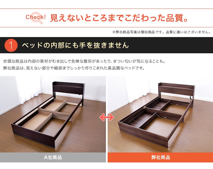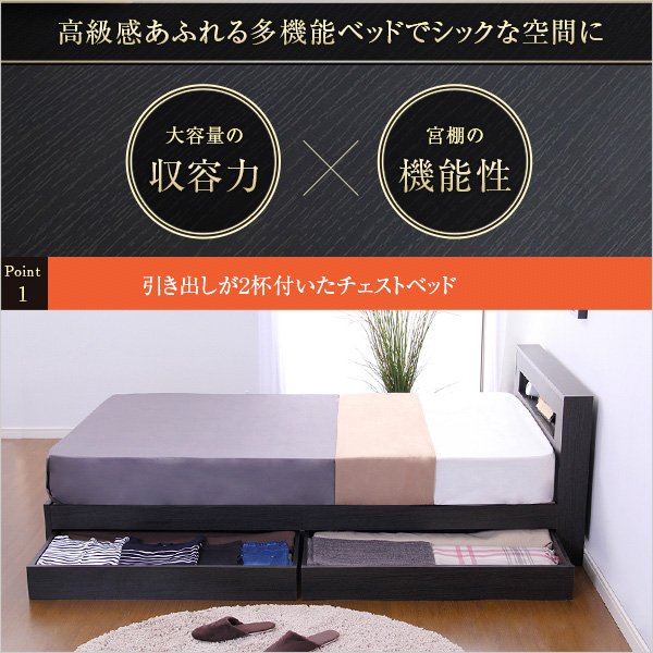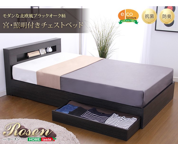 宮、照明付きチェストベッド【ローズン-ROSEN-(シングル)】(ロール梱包のポケットコイルスプリングマットレス付き)