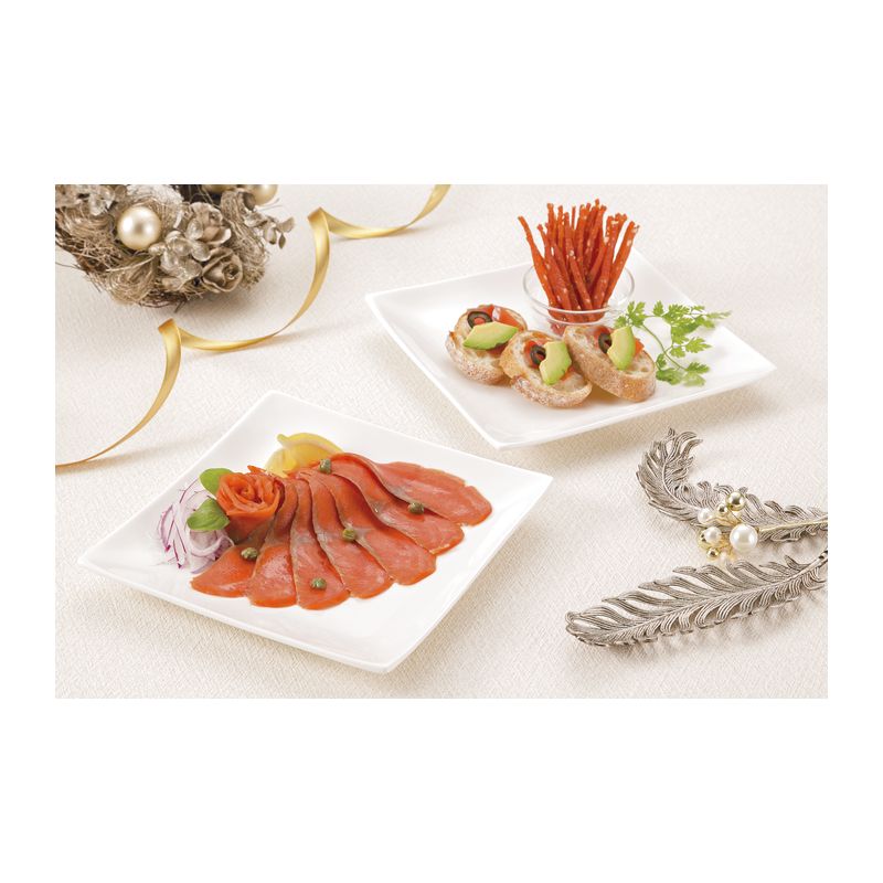 厳選した天然の紅鮭を北海道産広葉樹のチップでじっくり燻製後、絶妙の厚さにスライスしました。このスモークサーモンと北海道産の鮭にチーズを加えじっくり燻製、他には真似のできないスモークサーモンジャーキーをセットにしました。