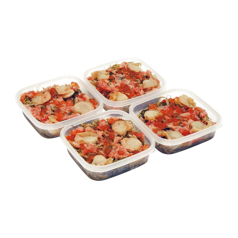 北海道 道南地方の郷土料理で昔から親しまれてきた昆布とスルメの松前漬に数の子のバラ子を加えて粘りを出し、帆立貝、ずわいがに、いくらをのせた、ちょっと贅沢な松前漬です。