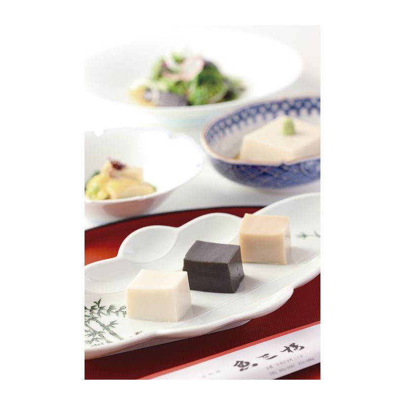 創業250余年の老舗銘店「魚三楼」が選んだ、まろやかな風味と口どけが自慢のごま豆腐。お好みのつけだれで美味しくお召し上がりいただけます。