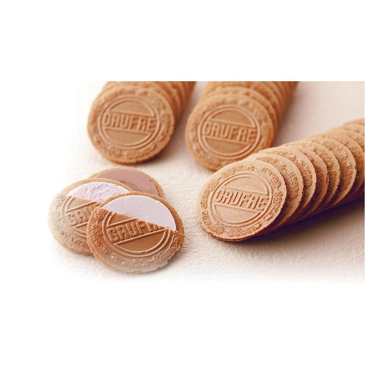 伝統菓子ゴーフルのパリッとした食感をそのままに、食べやすく、かわいらしいサイズに仕上げました。バニラ、ストロベリー、チョコレート、3種類のクリームを詰め合わせました。