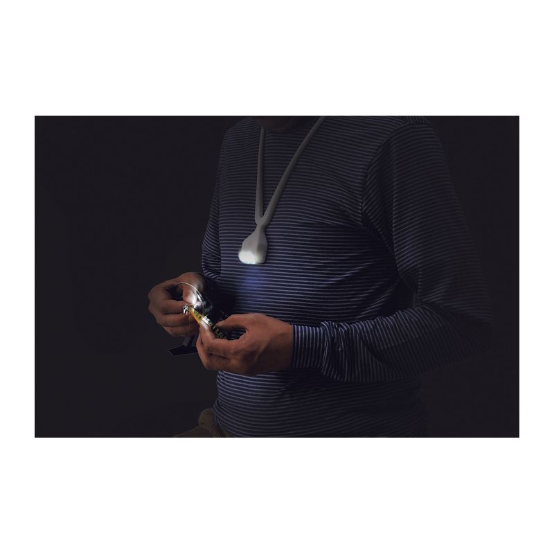夜の散歩やアウトドアにも便利。首にかけて使えば両手が自由に。 ・豊田合成製LED使用 ・スポットライト ・点滅灯・長さ二段階調節。