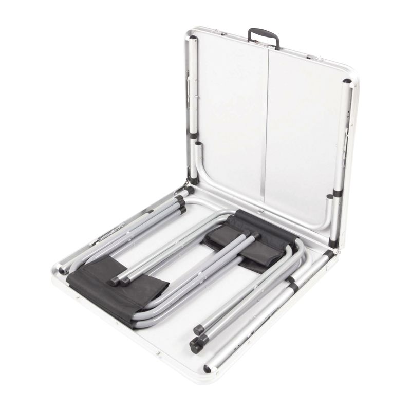 チェアとテーブルをオールインワン収納!・4人で使用するのに ピッタリのサイズです。 ・テーブルの高さを 3段階調節できます。 (690・620・565mm)・耐荷重/テーブル:約30kg(均等)、ベンチ:約70kg