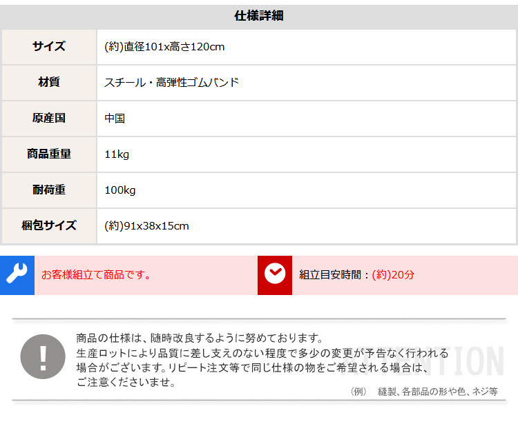 セーフティネット付き折りたたみ式トランポリン 直径101cm