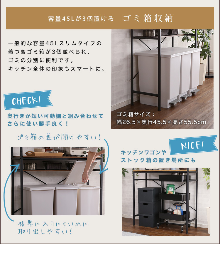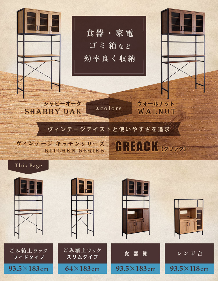 ヴィンテージごみ箱上ラック ワイドタイプ 【GREACK-グリック-】