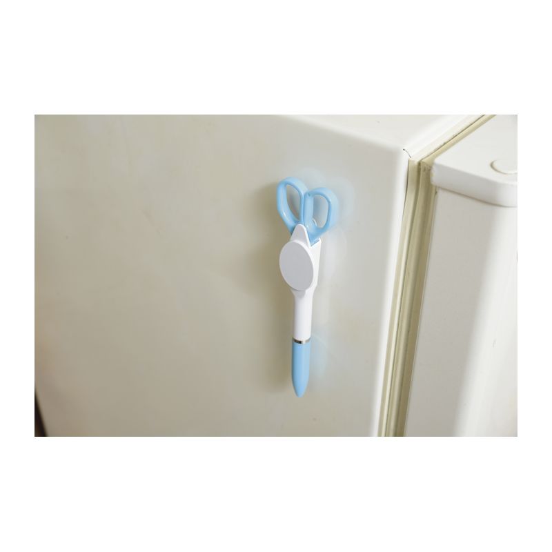 文具で使用頻度の高いハサミとボールペンを一体にした便利なグッズです。ハサミはプラスチックですので安全です。 ・裏面マグネット付