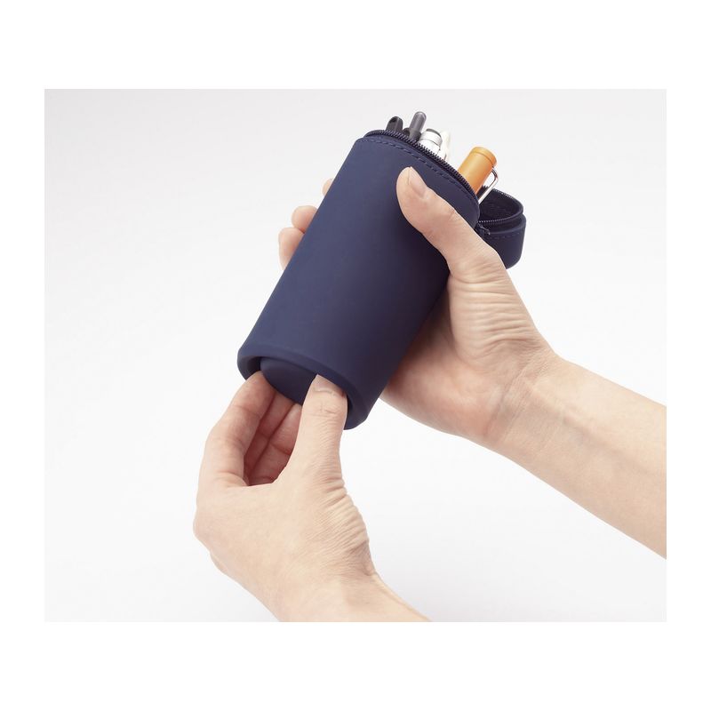 上から押すだけでペンスタンドに早変わり。シリコーンゴム素材なので汚れても水洗いOK!収納する時は底を引っ張り出します。