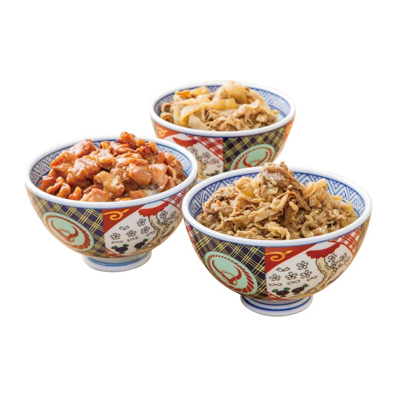 100年にわたる経験と努力の結晶である吉野家 牛丼の具。「牛丼のタレ」をベースに豚肉の旨みを引き出した豚丼の具。焼鳥丼の具は、特製タレで鶏肉を香ばしく焼き上げました。