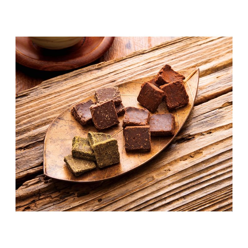 黒糖とチョコをベースにいちご、しお、抹茶、コーヒーを合わせた溶けにくく柔らかな食感の黒糖チョコの詰め合わせです。