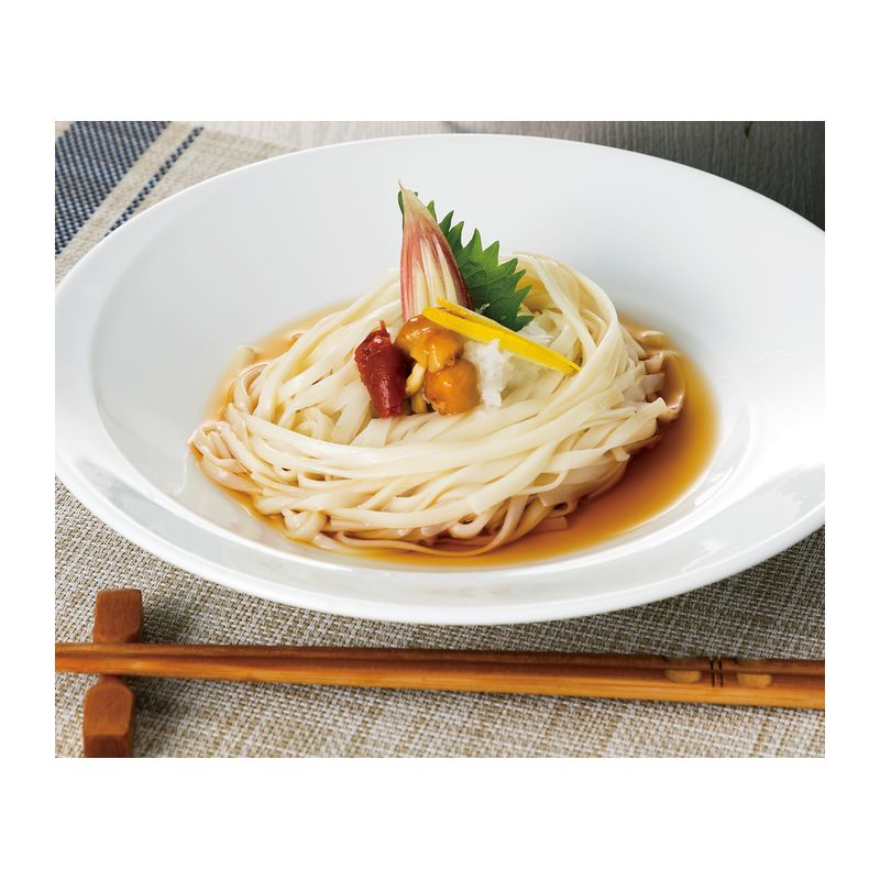 稲庭うどんは豊かな清水の恵みをうける奥羽山脈の裾野に三百有余年の永きに渡り、変わらぬ技法を頑なに守り継がれているうどんです。選び抜いたこだわりの小麦のみを用い、その一本一本を丹念に造りあげました。絹のようなつややかさと弾むコシの強さをそなえています。比内地鶏のガラスープをじっくり炊き出した味わい深い相性抜群のつゆで夏は冷たく、冬は温かくお好みで召し上がっていただけます。