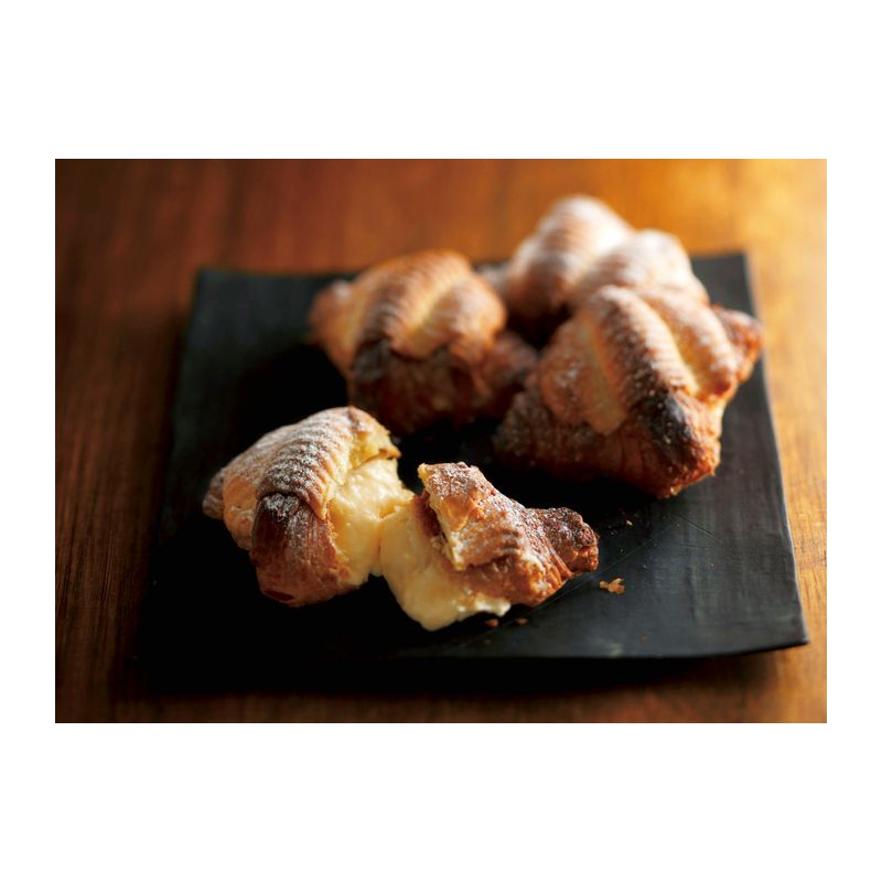くりーむクロワッサンは香ばしいクッキー生地には甘さひかえめのクリームで上品に。食べごたえしっかりの、さくさくクッキー生地を二つに割ると、自慢の“とろっ”とクリームがたっぷり。