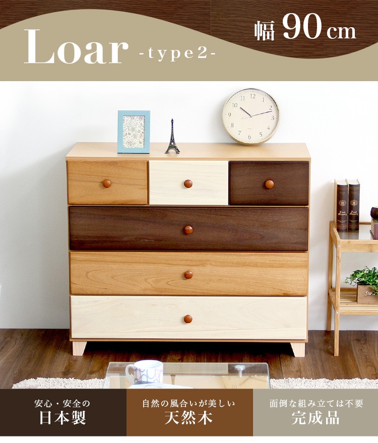 美しい木目の天然木ローチェスト 4段 幅90cm Loarシリーズ 日本製・完成品|Loar-ロア- type2