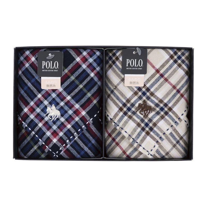 ポロ ガーゼ裏無撚糸タオルハンカチ2枚組