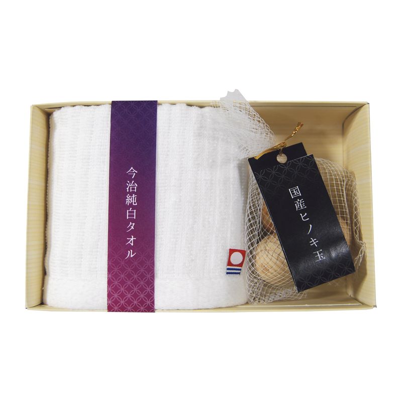 今治純白(純晒し)タオル&国産ヒノキ玉セット TSE0703401
