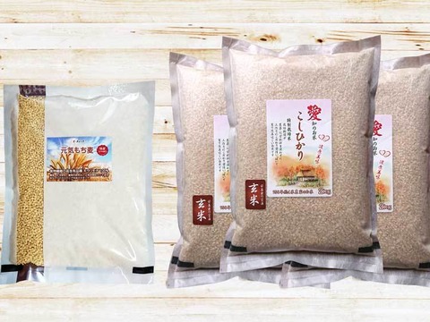 お得な腸活セット コシヒカリ玄米2kg×3 もち麦キラリモチ900g×1 農薬・化学肥料不使用