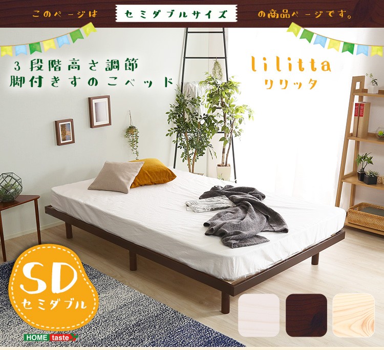 パイン材高さ3段階調整脚付きすのこベッド(セミダブル)