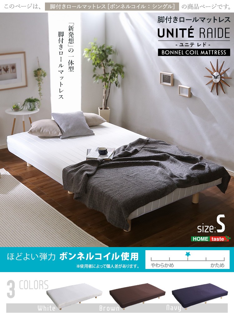 新発想で搬入も組立カンタン! ほどよい弾力 脚付きロールマットレス(ボンネルコイルスプリング)【Unite -Raide- -ユニテ・ライド-】シングルサイズ