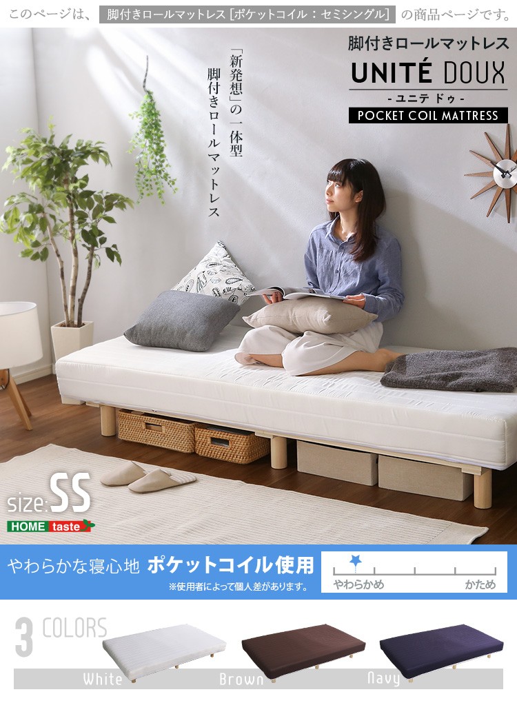 新発想で搬入も組立カンタン!やわらかな寝心地 脚付きロールマットレス(ポケットコイルスプリング)【Unite -Doux- -ユニテ・ドゥ-】セミシングルサイズ
