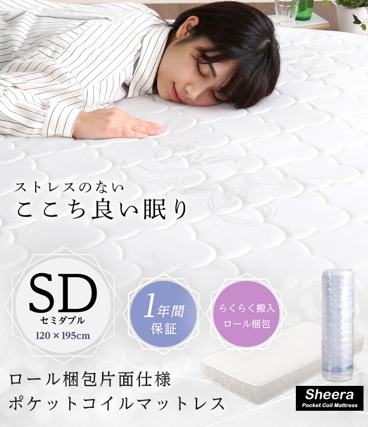 ロール梱包片面仕様ポケットコイルマットレス【Sheera-シェエラ-】セミダブルサイズ