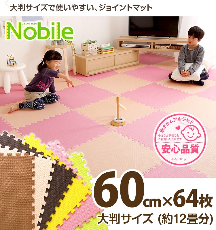 サイドパーツ付きジョイントマット 64枚セット(大判60cm)安心の低ホルムアルデヒド、防音、保温【Nobile-ノービレ-】