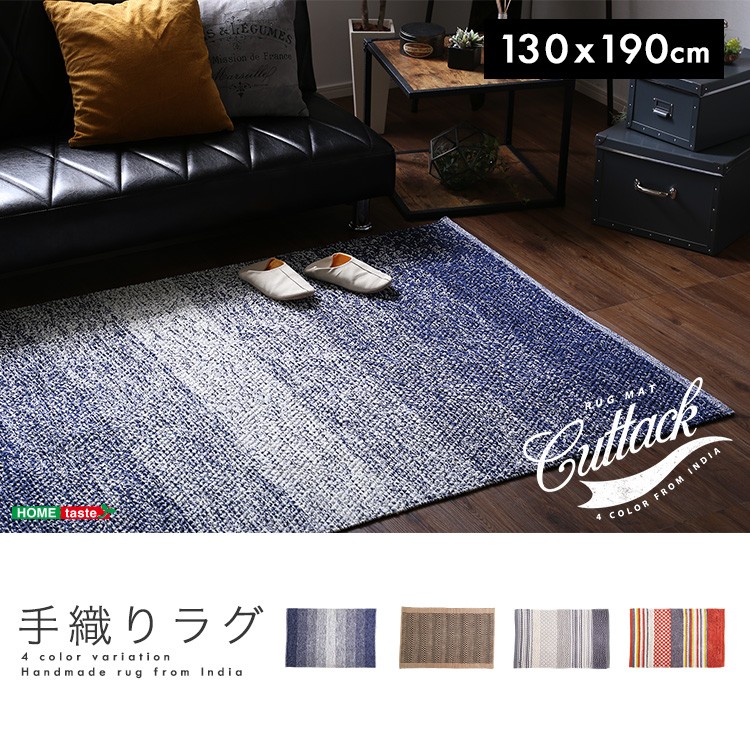 人気の手織りラグ(130×190cm)長方形、インド綿、オールシーズン使用可能|Cuttack-カタック-