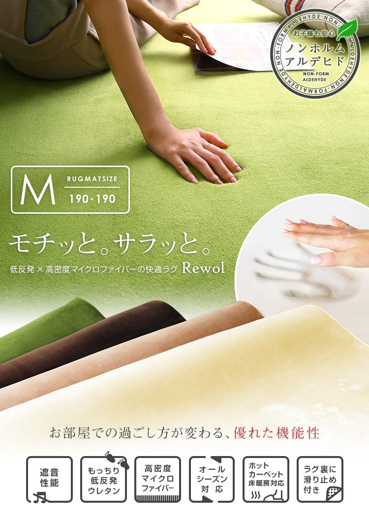 高密度マイクロファイバー・低反発ラグマットMサイズ(190×190cm)ホットカーペット、床暖房対応|リウル