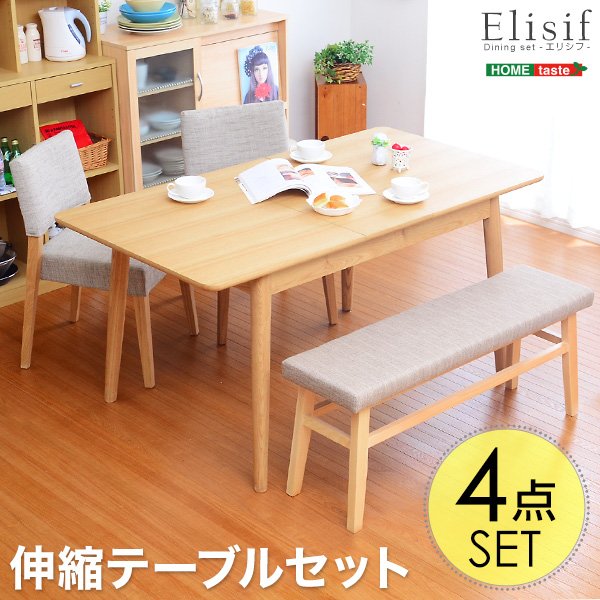 ダイニング4点セット【-Elisif-エリシフ】(伸縮テーブル幅120-150・ベンチ&チェア)