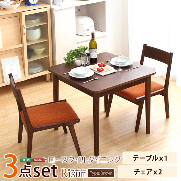 ダイニング3点セット(テーブル+チェア2脚)ナチュラルロータイプ ブラウン 木製アッシュ材|Risum-リスム-