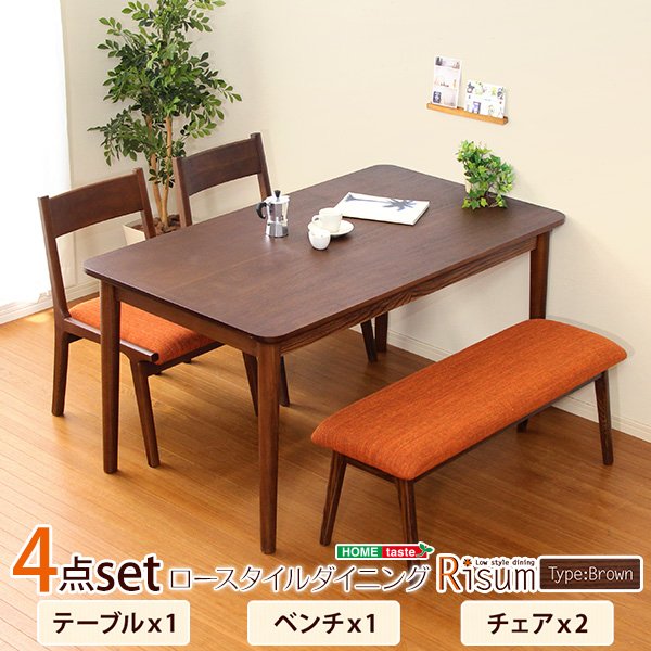 ダイニング4点セット(テーブル+チェア2脚+ベンチ)ナチュラルロータイプ ブラウン 木製アッシュ材|Risum-リスム-