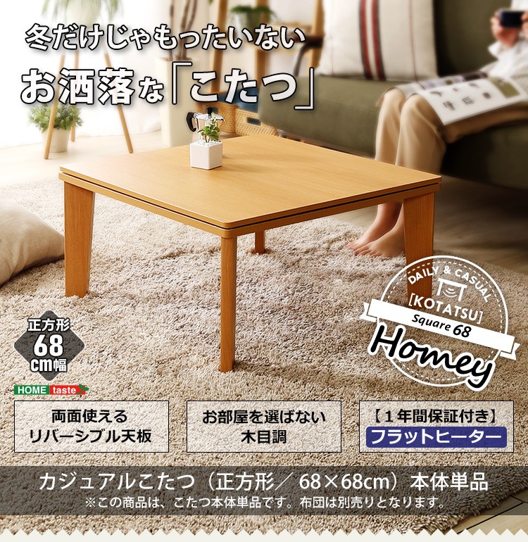 木目調 カジュアル リバーシブル こたつ フラットヒーター付 68?幅 正方形 単品【Homey-ホーミー -】シリーズ [SQUARE68]