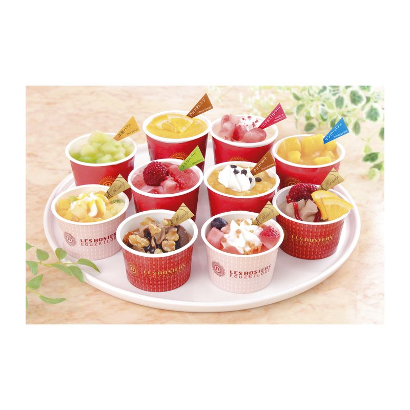 マンゴーパフェ・ストロベリー・バニラ&ストロベリー・チョコバナナ・チョコオレンジ・洋梨パフェ各105mL×各1、チョコ&ミックスフルーツ・チョコ&ミックスナッツ・バニラ&ミックスベリー・バニラ&トロピカルフルーツ各50mL×各1