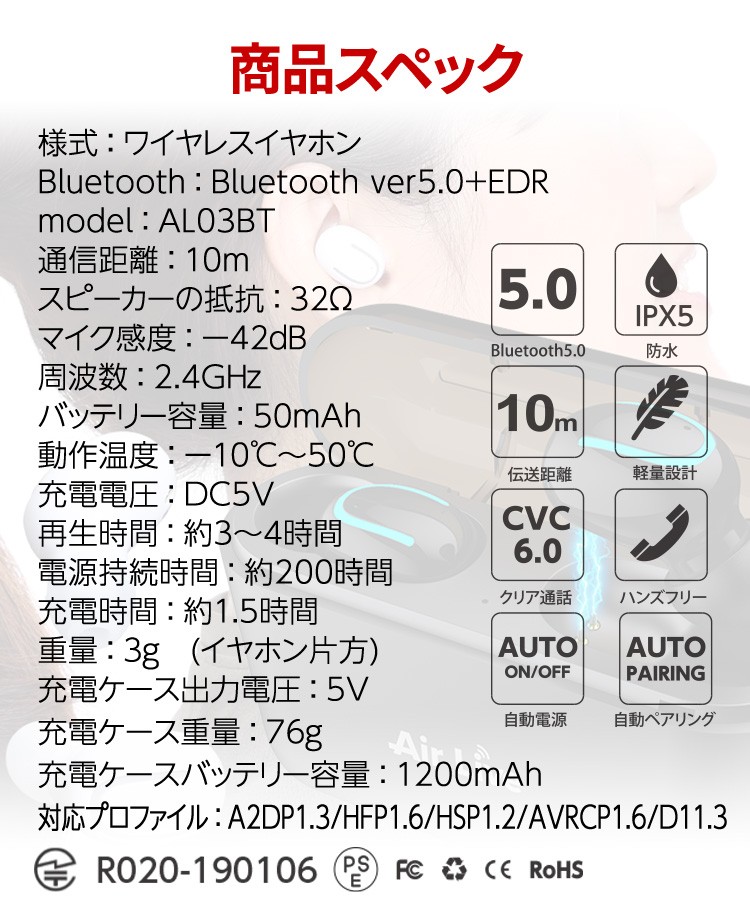 ワイヤレスイヤホン 充電ケース 軽量 高品質
