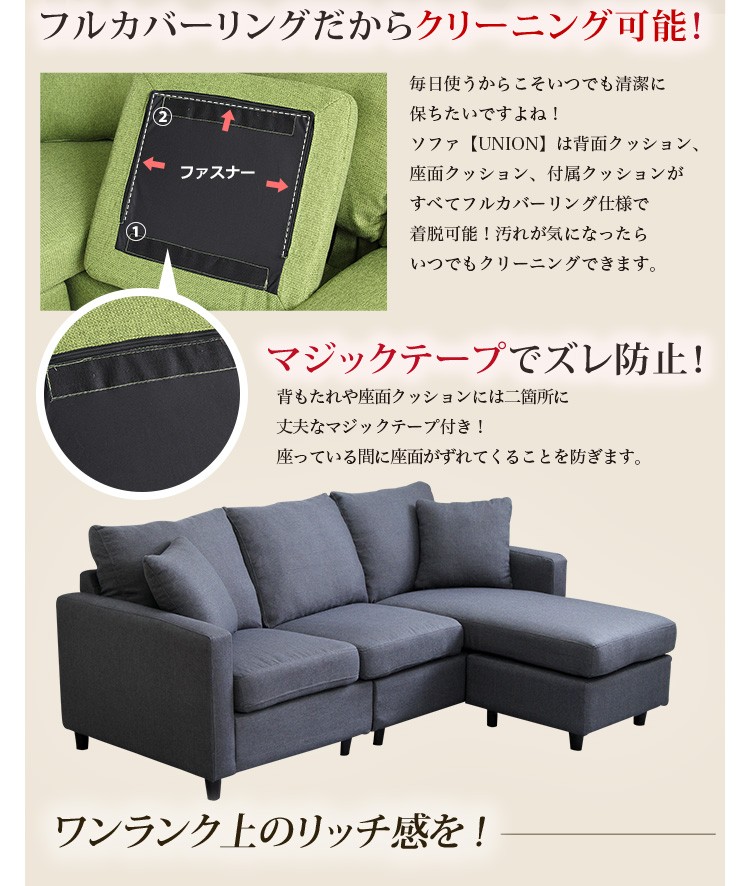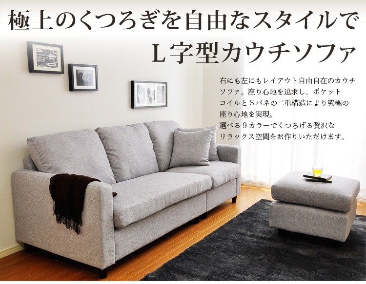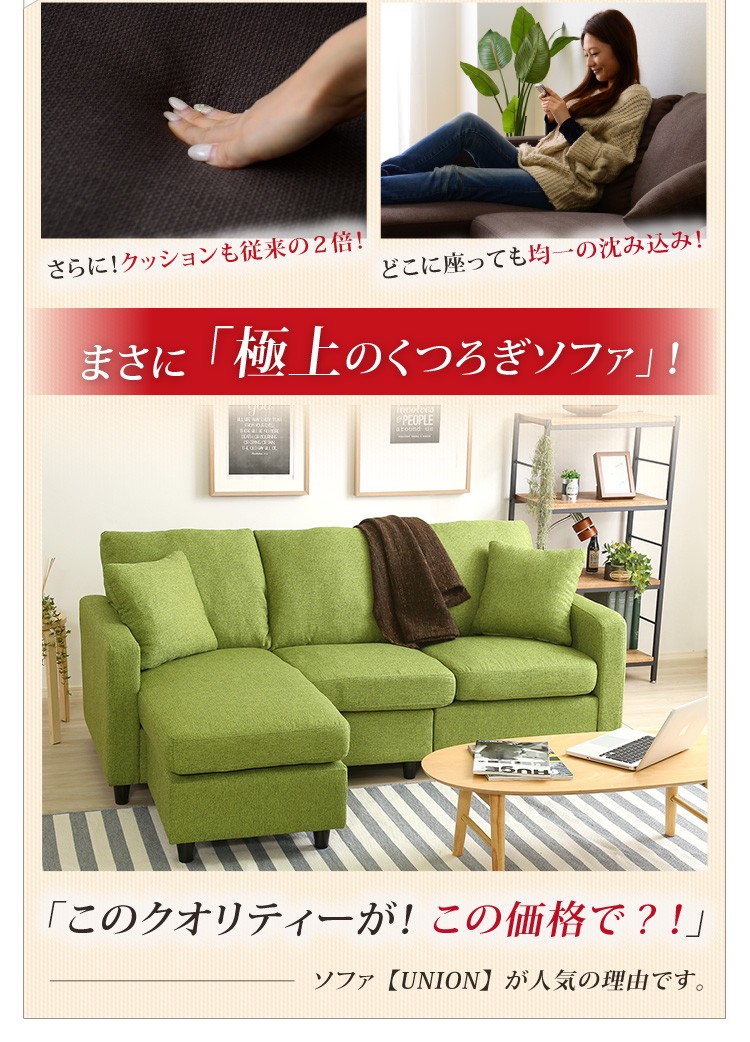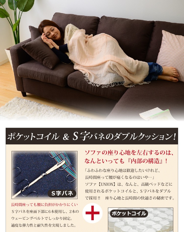 選べる9カラー!ポケットコイル入りコーナーソファー【Union-ユニオン-】