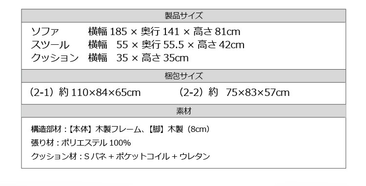 (2-1)約115x85x63cm(約30kg) (2-2)約88x72x59.5cm(約20kg)