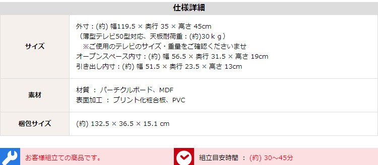 外寸:(約)幅120x奥行き33x高さ45cm