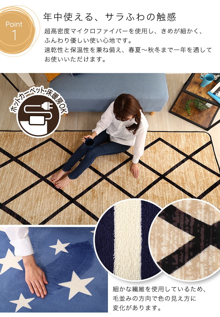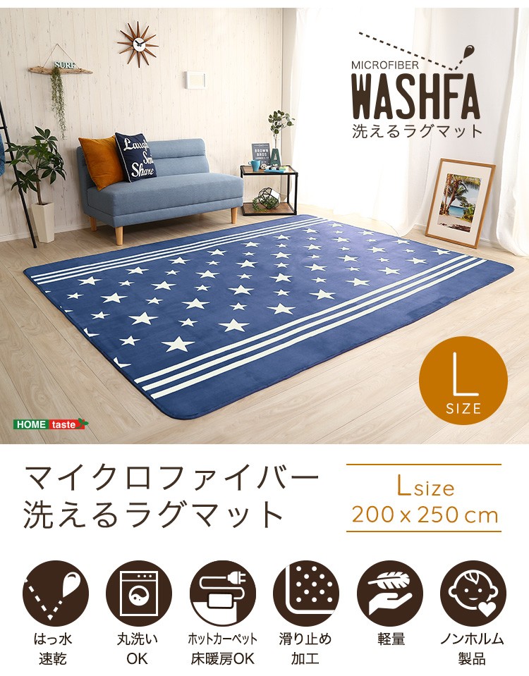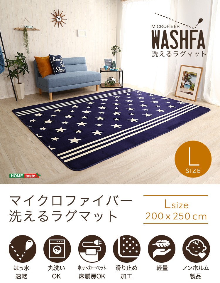 マイクロファイバー・デザインラグマットLサイズ(200×250cm)洗えるラグマット 【WASHFA】