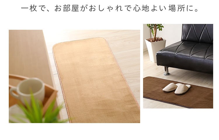 ゴミの絡まりにくい短毛マイクロファイバーのキッチンマットLサイズ(65×240cm)。超極細繊維を180gの高密度で織り込んだマイクロファイバー素材は極上の肌触り。