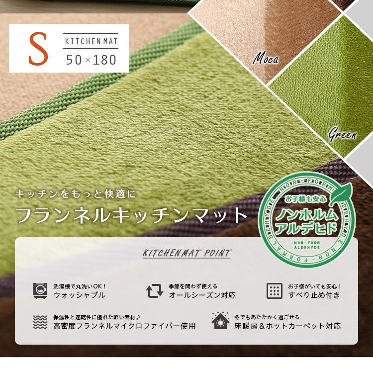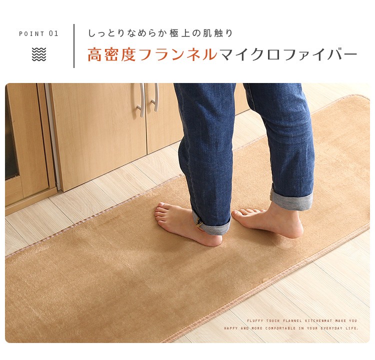 高密度フランネルマイクロファイバー・キッチンマットSサイズ(50×180cm)洗えるラグマット【Naltorea-ナルトレア-】