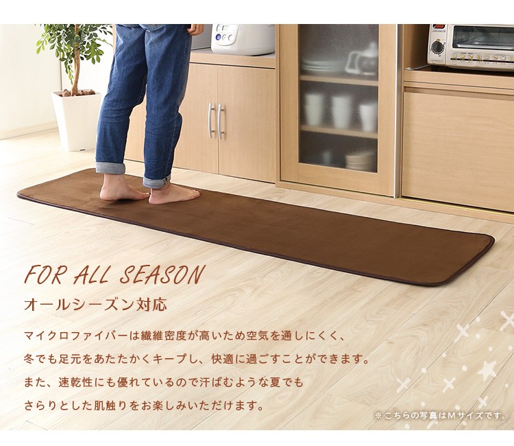ゴミの絡まりにくい短毛マイクロファイバーのキッチンマットSサイズ(50×180cm)。超極細繊維を180g/?の高密度で織り込んだマイクロファイバー素材は極上の肌触り。