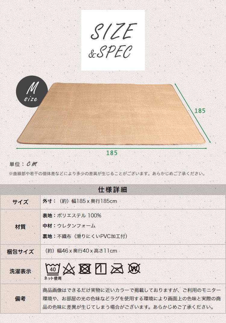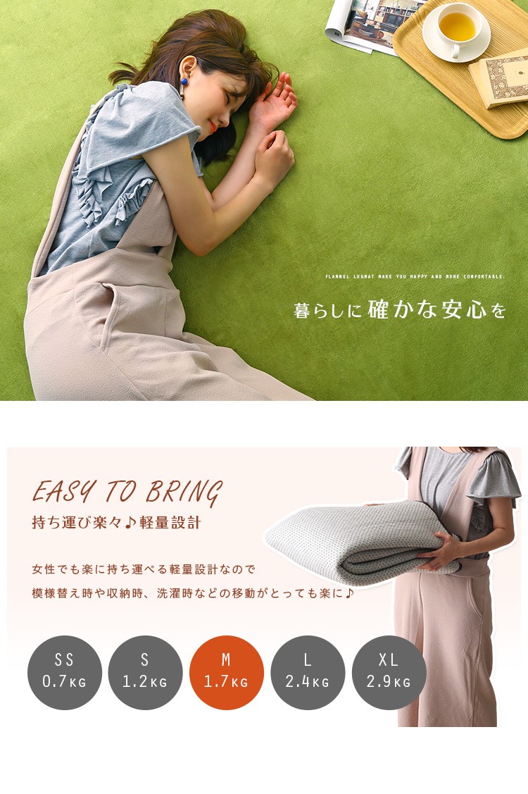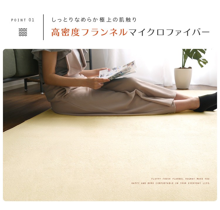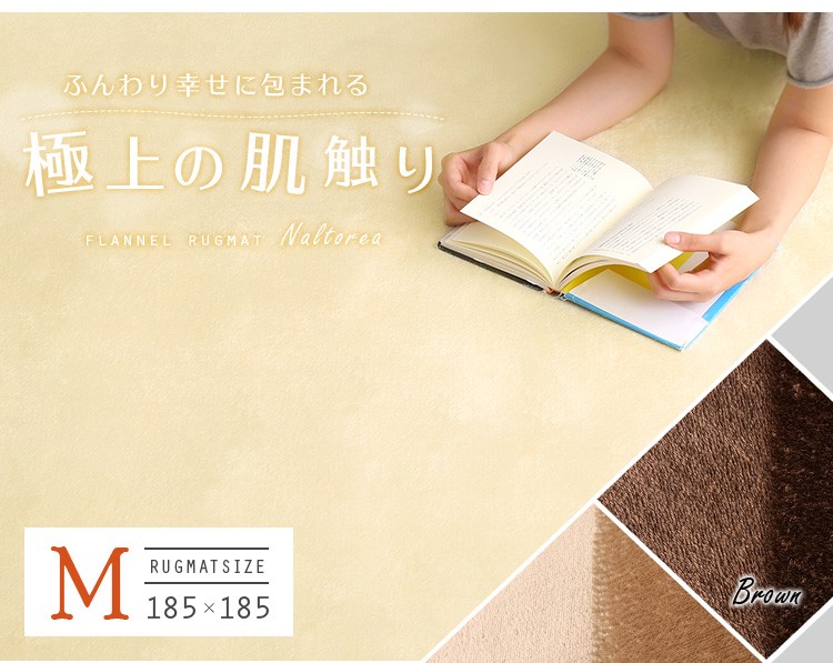 高密度フランネルマイクロファイバー・ラグマットMサイズ(185×185cm)洗えるラグマット|ナルトレア