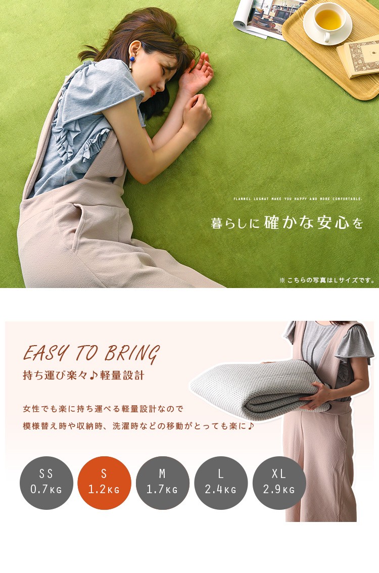 高密度フランネルマイクロファイバー・ラグマットSサイズ(130×185cm)洗えるラグマット|ナルトレア