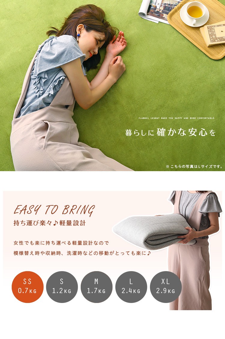 高密度フランネルマイクロファイバー・ラグマットSSサイズ(100×140cm)洗えるラグマット|ナルトレア