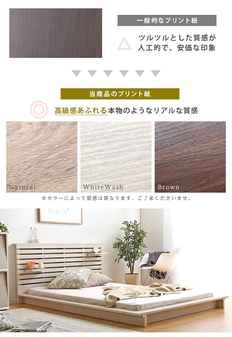 可動棚付きフロアベッド(ダブル)ベッドフレーム、ロースタイル、スリムヘッドボード|Rodelia-ロデリア-