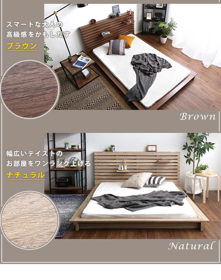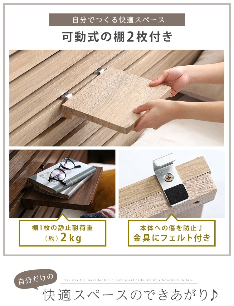 可動棚付きフロアベッド(セミダブル)ベッドフレーム、ロースタイル、スリムヘッドボード|Elfom エルフォム