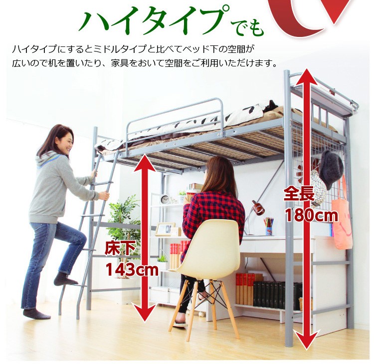 高さ調整可能!宮・コンセント付き ロフトベッド【ORCHIS-オーキス-】