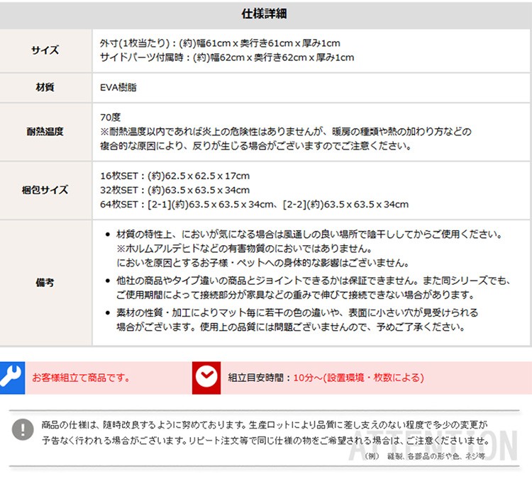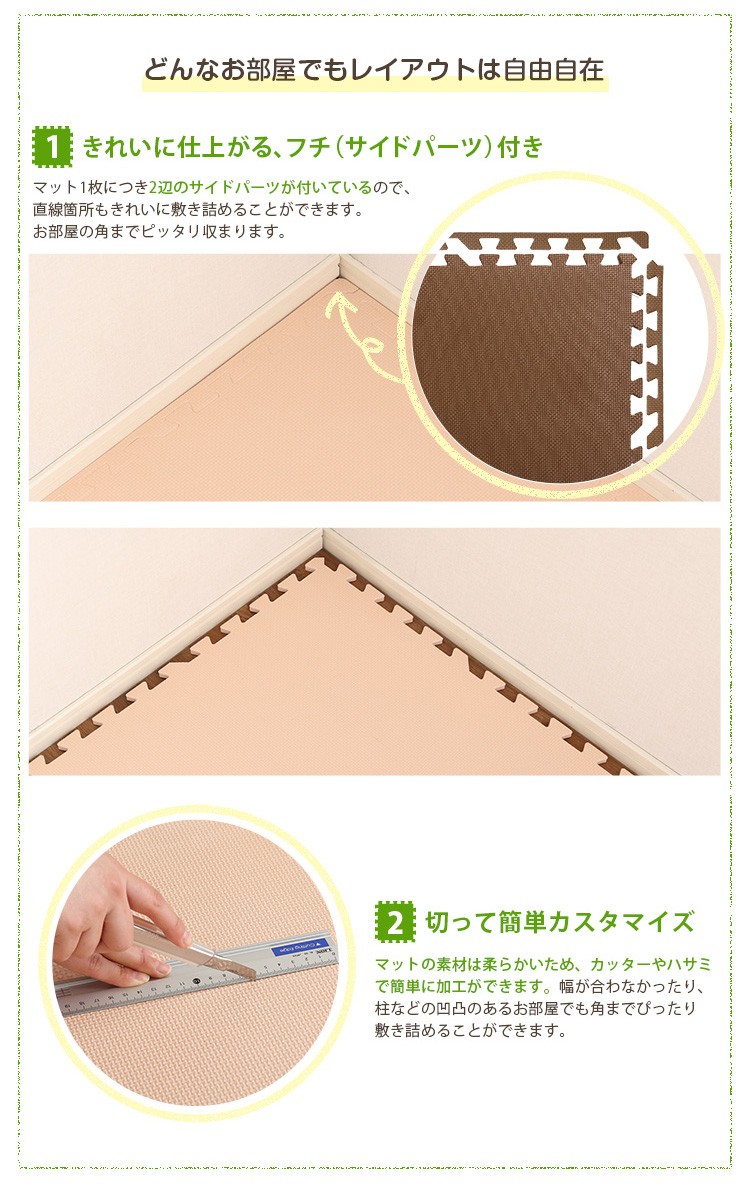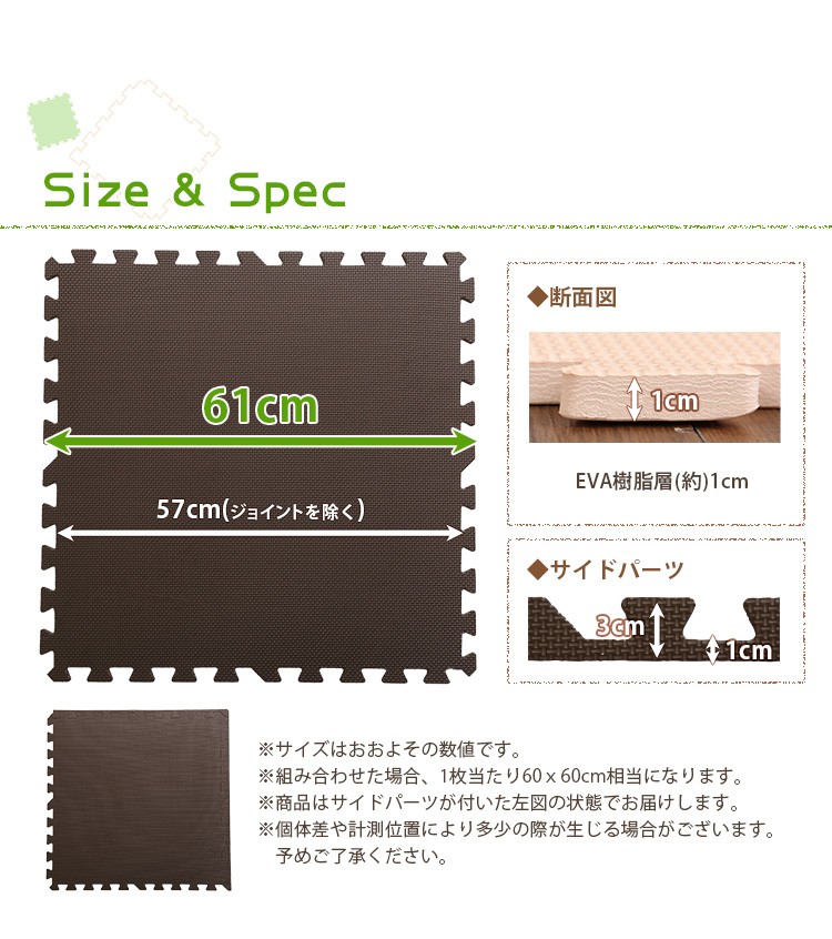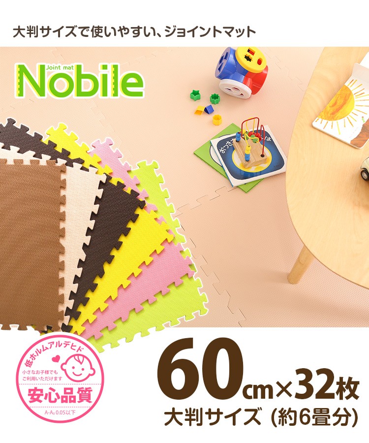 サイドパーツ付きジョイントマット 32枚セット(大判60cm)安心の低ホルムアルデヒド、防音、保温【Nobile-ノービレ-】