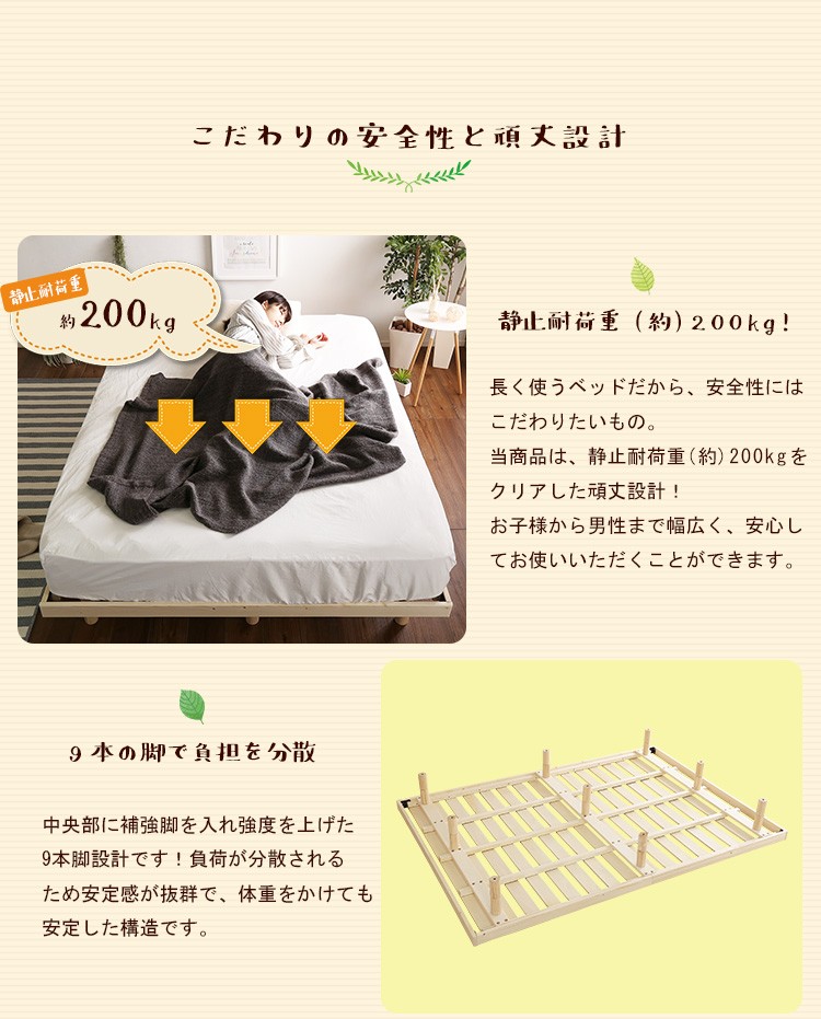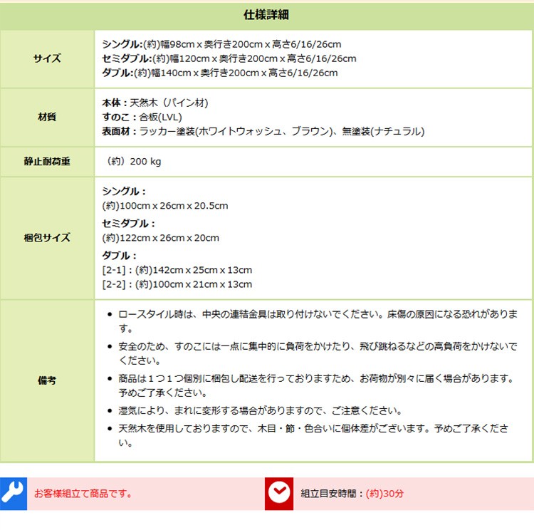 材質:フレーム:天然木(パイン材)、すのこ:積層合板(LVL)