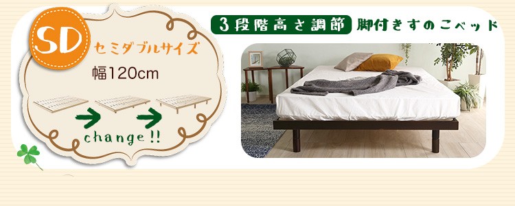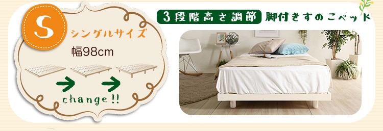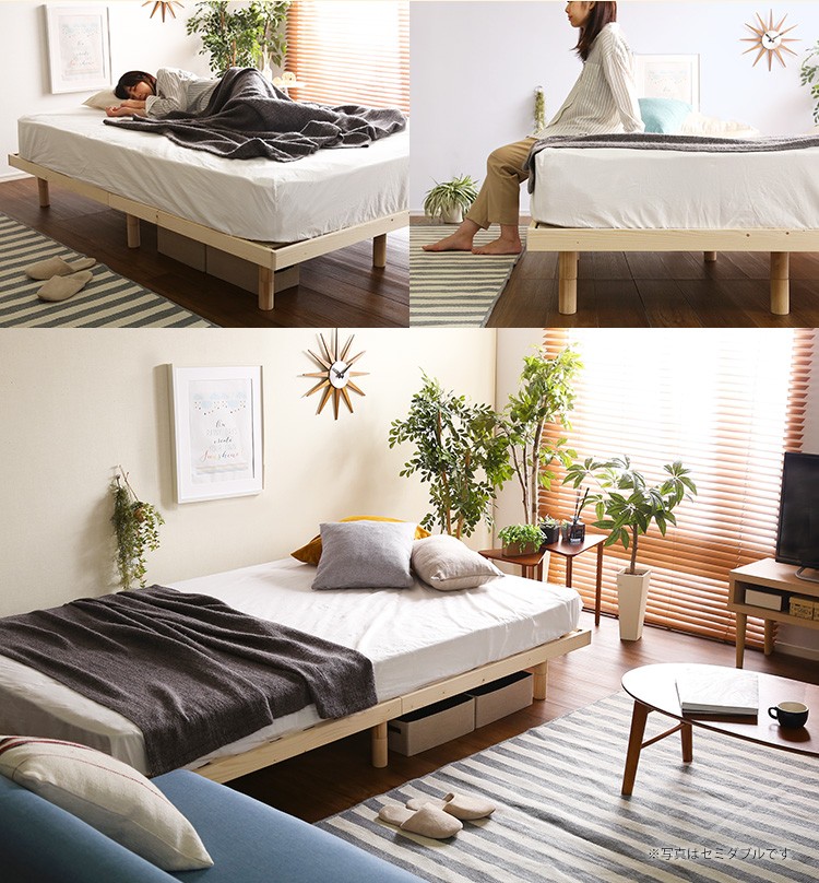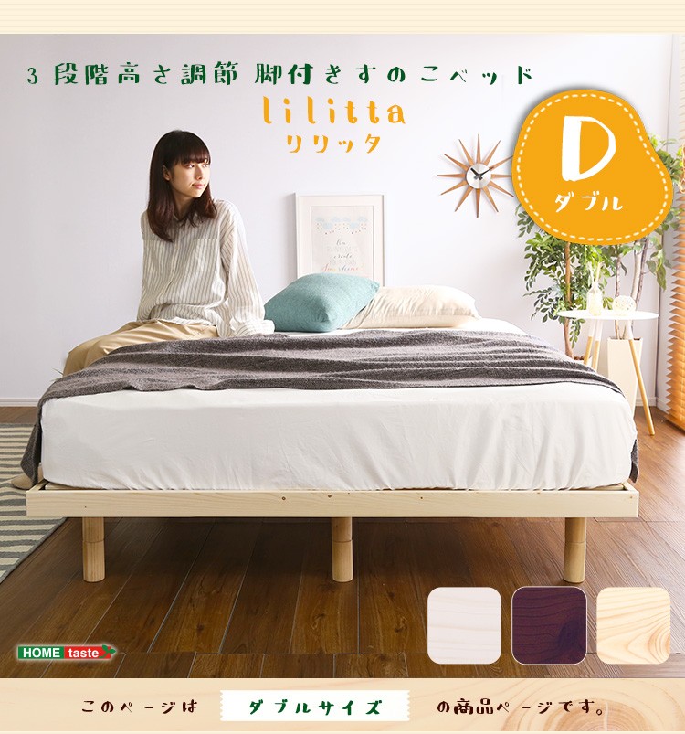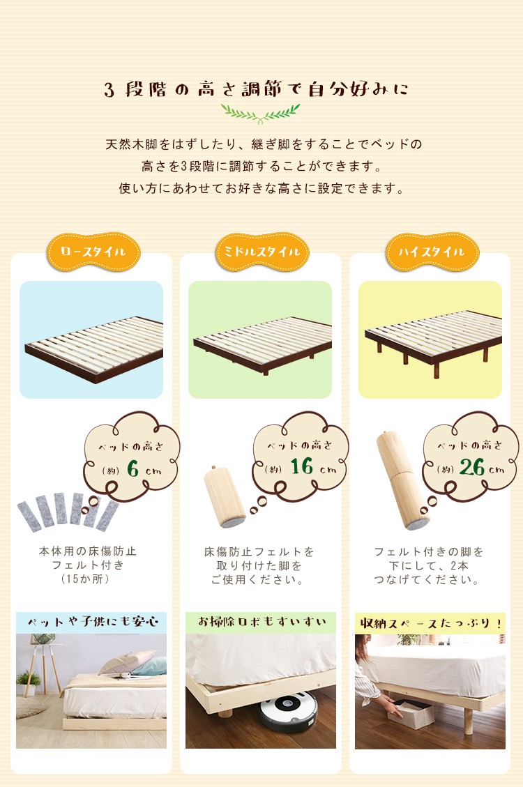 パイン材高さ3段階調整脚付きすのこベッド(ダブル)