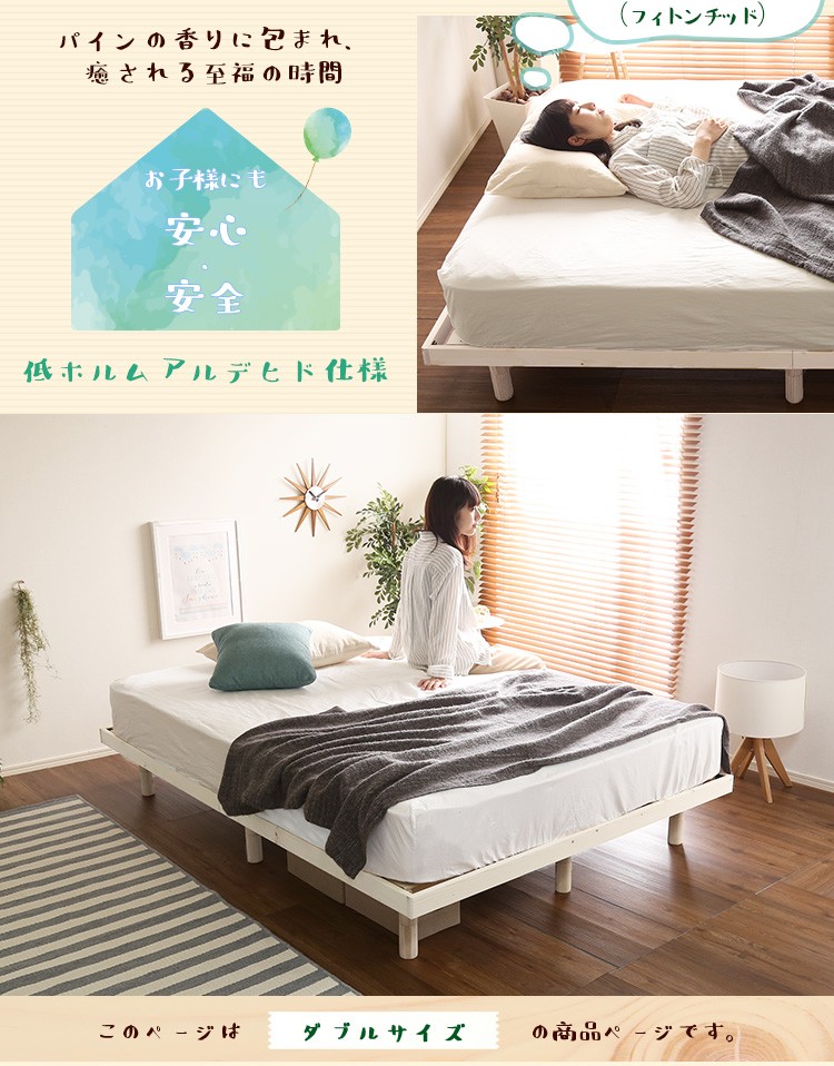 脚付きすのこベッド ダブル パイン材ベッド 木製ベッド