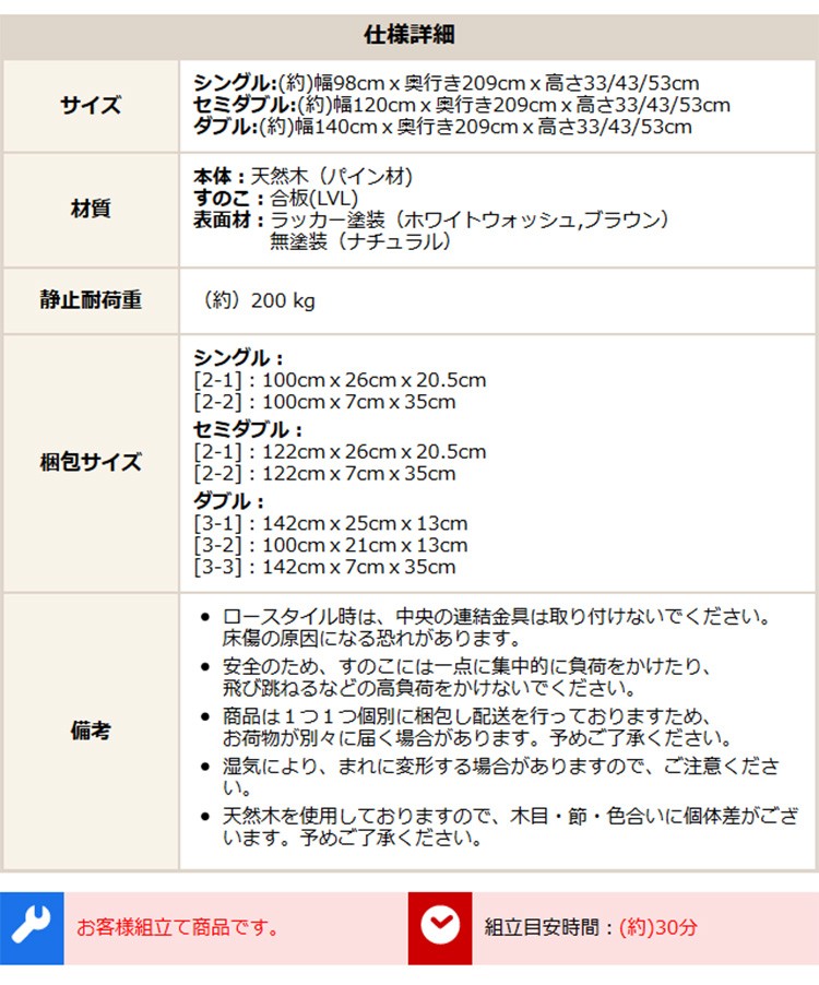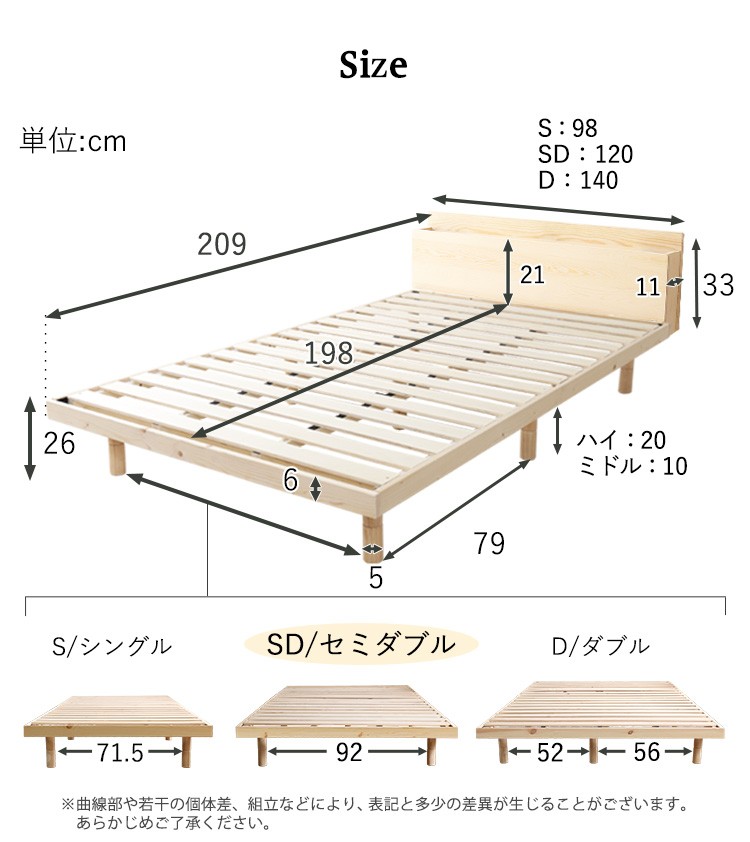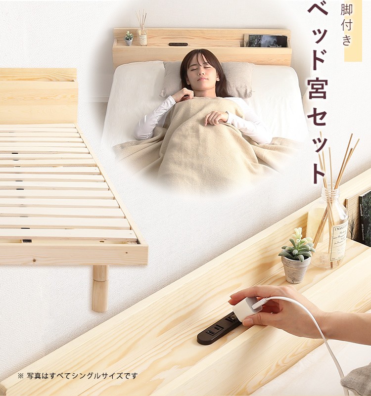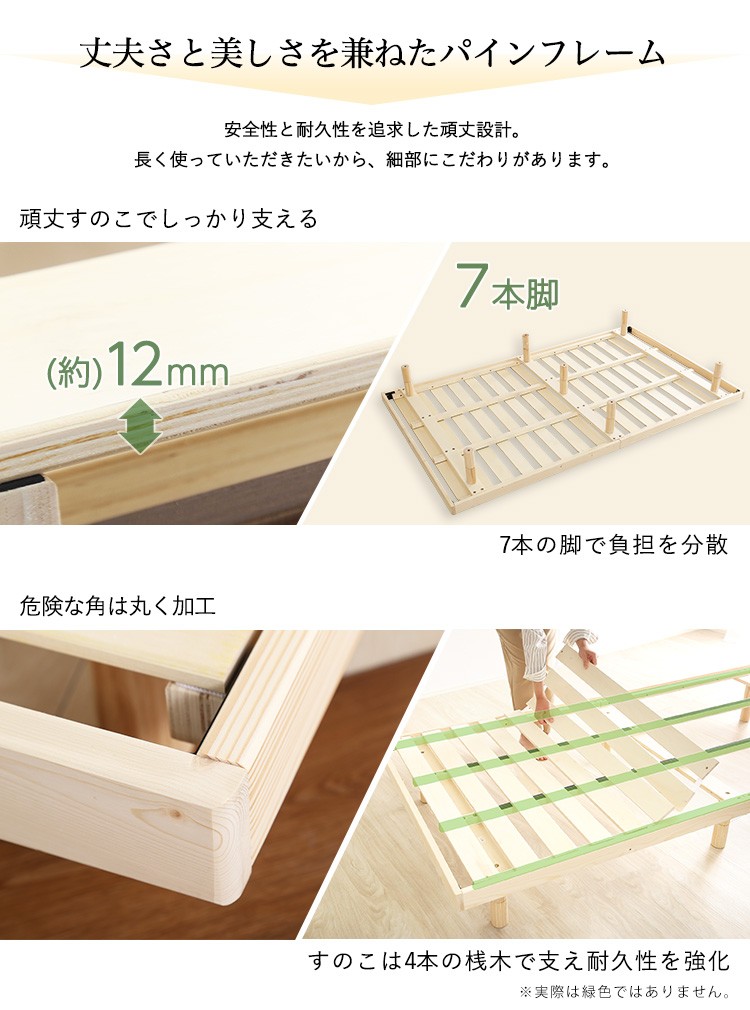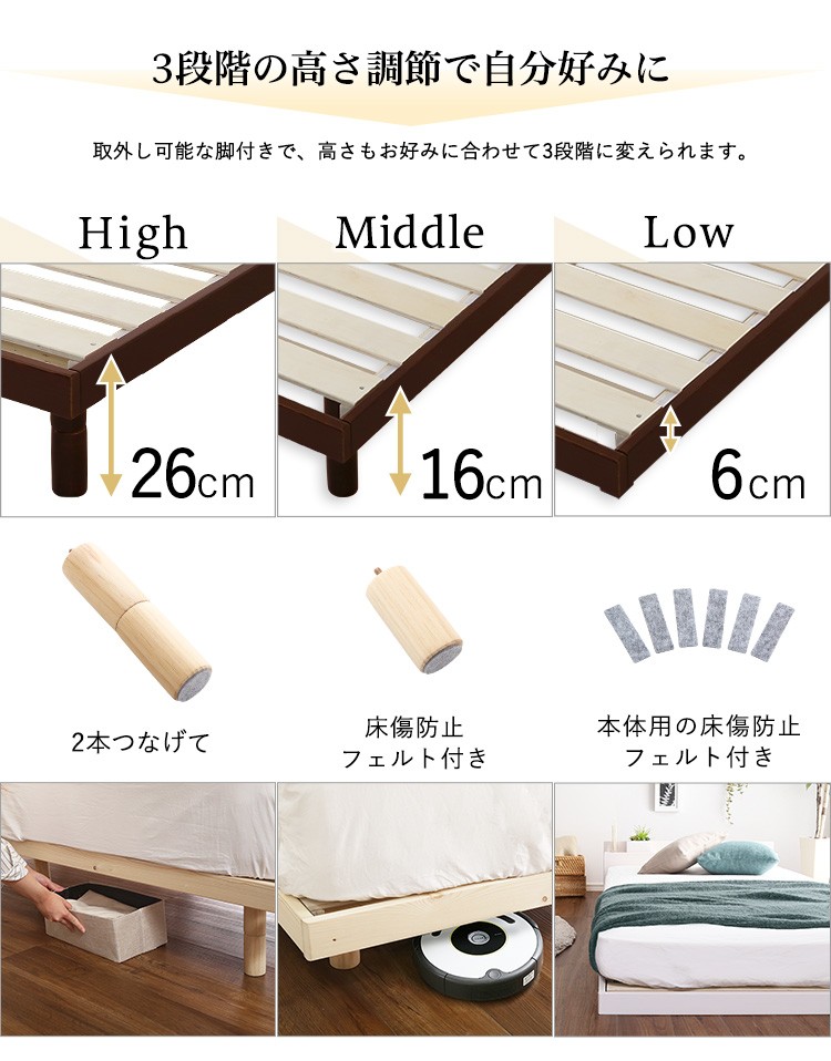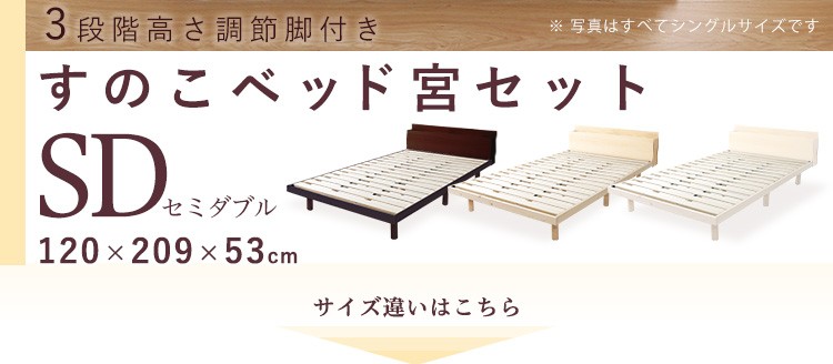 【宮セット】パイン材高さ3段階調整脚付きすのこベッド(セミダブル)